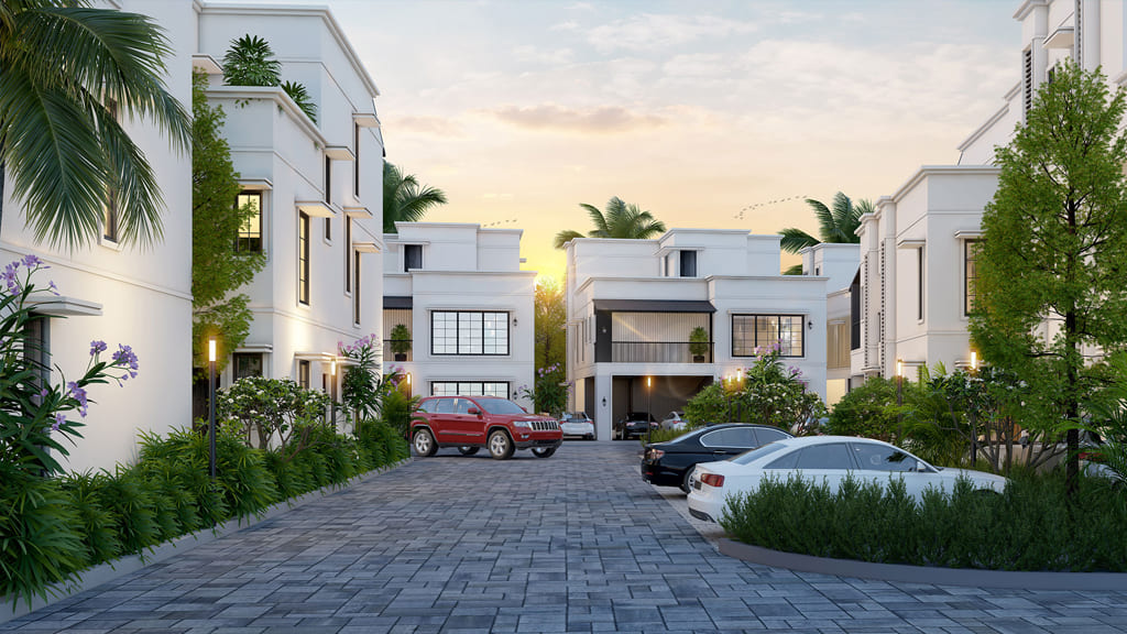 The villas come in 3, 3.5, 4 and 5 BHK configurations, each thoughtfully designed with a private home-theatre room and ranging from 2888 to 6493 sq.ft. Residents enjoy a grand 20,900 sq.ft clubhouse with a large swimming pool, along with premium sports facilities including a covered badminton court and a tennis court. Every villa offers three to six parking spaces depending on size, complemented by branded fittings, superior finishes and luxurious 8 ft doors.
